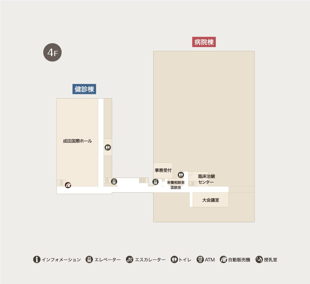 | 4F | 成田国際ホール | 4F | 事務局、栄養相談室、臨床治験センター |