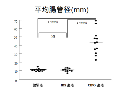 以前は、大腸型限局型の偽性腸閉塞という病気が知られていました。現在はこの概念がなくなり巨大結腸症に統一されています。この病気の診断は専門医でないと難しいのですが、もし巨大結腸症の場合、CIPOのように小腸の異常がなく、吐き気などの腸閉塞症状も軽いことが多いようです。また、手術で結腸を切除することで症状がなくなり、経過が良いことがわかっています。