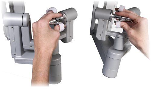 医師がロボットアームに装着されている鉗子やメスを操作します。ダビンチの鉗子はリスト構造を持ち、人間の手より大きな可動域と手ぶれ補正機能を備えています。