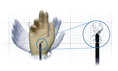 回転する手首を備えた器具(鉗子)を使用し、精緻な手術を行うことができます。