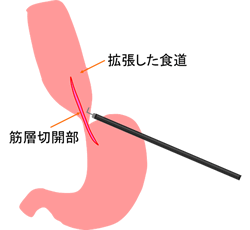 上記の下部食道括約筋をバルーンで膨らませて通過を改善させる目的で内視鏡的バルーン拡張術を行うことがあります。また、通過障害の原因となっている下部括約筋を内視鏡的に切開する、内視鏡的筋層切開手術(POEM)を行うこともあります。