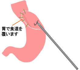 治療は消化器内科での内服薬が主体となりますが、最新の薬剤を用いてもなかなか病状をコントロールできない場合があります。このような時に手術治療を行います。具体的には胃の壁を食道に巻きつけるように縫い付けることで胃の内容物が逆流しないようにする手術があり、それを腹腔鏡下手術で行います。