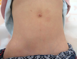 また、1歳半頃までにヘルニア門が閉鎖しない場合や、閉鎖後も余剰皮膚が残って目立ってしまう場合(臍突出症)は、できるだけ綺麗なお臍を目指して手術による臍形成術も積極的に行っております。