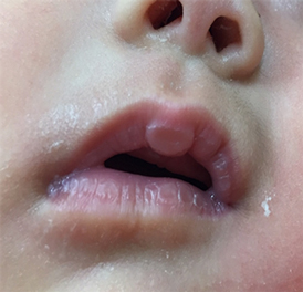 特に新生児期/乳児期のお子様で、舌小帯短縮症に上唇小帯短縮症を合併している場合には、舌小帯切開だけでは症状の劇的な改善を認めないこともあるため、上唇小帯の切開も積極的に行っています(局所麻酔下に行います)。上唇小帯短縮症を疑う症状は、浅飲みや哺乳後にできた吸いダコ、乳頭痛などです。