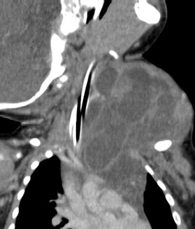 (左頚部から縦隔に広がる病変)
