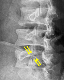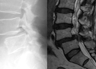 第4腰椎に前屈時に増強するすべりを認め不安定性を示しています。