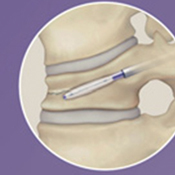 対象となる疾患は、脊椎圧迫骨折や転移性脊椎腫瘍による病的骨折などです。原則、手術翌日より軟性もしくは硬性のコルセットを装着し、起立・歩行を開始します。単独で行うこともありますが、固定術と一緒に行うこともあります。単独で行う場合には、全身麻酔下に約5mmの皮切2ヶ所から細い筒を骨折椎体に挿入し、人工骨やセメントを注入して、骨折を人工的に接合します。
