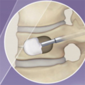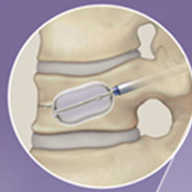 BKPと同様に細い筒から骨折したせぼねに風船をしぼめた状態で設置して、ゆっくり風船を膨らませます。風船でステントを広げてスペースを作り、風船を取り出してステントとともにセメントを注入します。