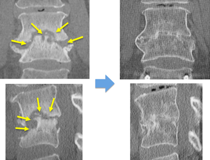 対象となる疾患:脊椎圧迫骨折、転移性脊椎腫瘍、化膿性脊椎炎、びまん性特発性骨増殖症など
