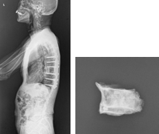 (1)胸椎に肺癌の転移性腫瘍を認めます。脳転移などもあったため、根治的手術は困難でした。