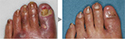 透析患者さんの足の傷は治りにくいのが特徴です 。この方は、巻き爪の治療を受けたら潰瘍が生じたそうです。