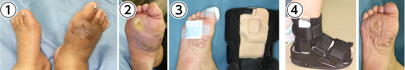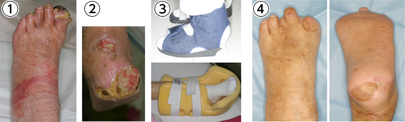 ③歩行時と就寝時(透析治療中)に免荷装具を装着し治癒しました。