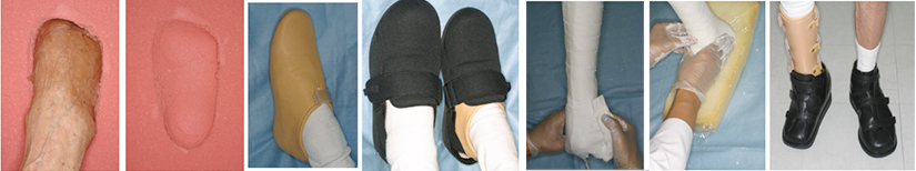 傷は押されたり、擦れたりすると治りません。様々な部位の傷に対応した免荷装具の装着が、慢性創傷の治療では大切です。