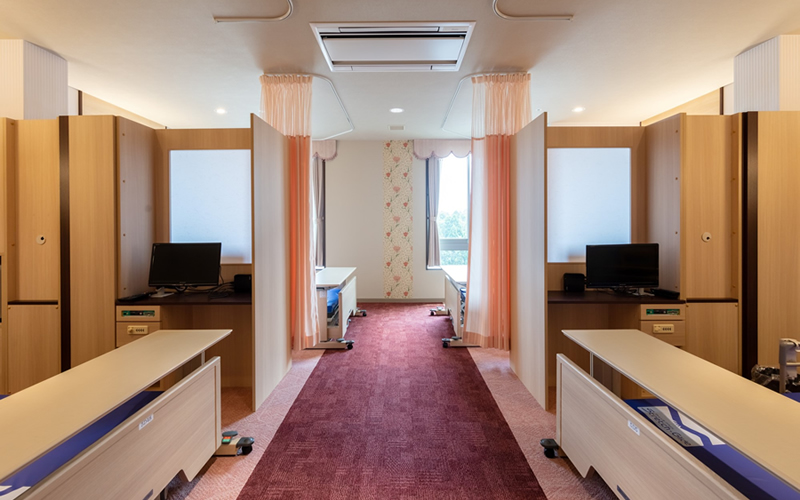 大切なご出産に際し、お一人おひとりの大切な空間をご用意しますゆったりとした開放感たっぷりの個室を9室、プライバシーを確保しながら居住性を高めた明るい4床室を3室、ご用意しています。