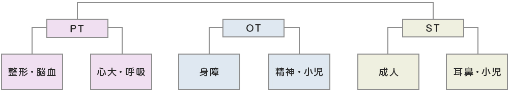 また、リハビリテーション技術部では、疾患ごとに小班を編成しています。各班ごとに、提供しているリハビリテーション評価やプログラムの妥当性検証を目的とするミーティングを毎週行うことにより、一人一人に合った適切かつ効果的なリハビリテーションの提供を追及しています。