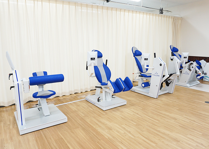 体幹・下肢筋力強化練習を空気圧トレーニング「HUR(フー)」を使用し、心臓への負荷をかけ過ぎないよう低負荷にて実施します。