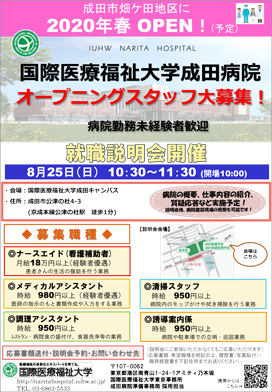 2020年春の病院開院時にご勤務いただく方への就職説明会を開催いたします。