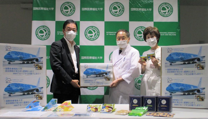 ANA㈱上席執行役員・成田空港支店長 兼 ANA成田エアポートサービス㈱代表取締役社長の石田様 宮崎病院長、坂本総看護部長