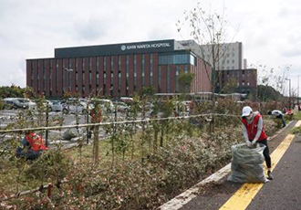 10月20日(火)、日本航空株式会社(JAL)成田空港支店様を中心としたJALグループの有志の皆様による当院敷地内の除草作業が行われました。これは、当院の敷地内の環境整備に協力したい、というJAL成田空港支店様からのお申し出によって実現したものです。JALの皆様69名と当院スタッフ25名が混合した10班のチ-ムで作業を行い、おかげさまで敷地内はとてもすっきりし、患者様に気持ちよくご来院いただけるようになりました。
