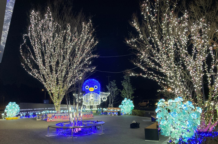 成田市と山崎電設工業㈱様より、当院の敷地内の一部をイルミネーションすることで医療従事者に対する感謝と応援につなげたい、というお申し出をいただきました。