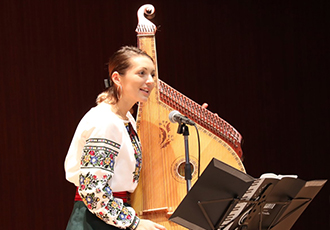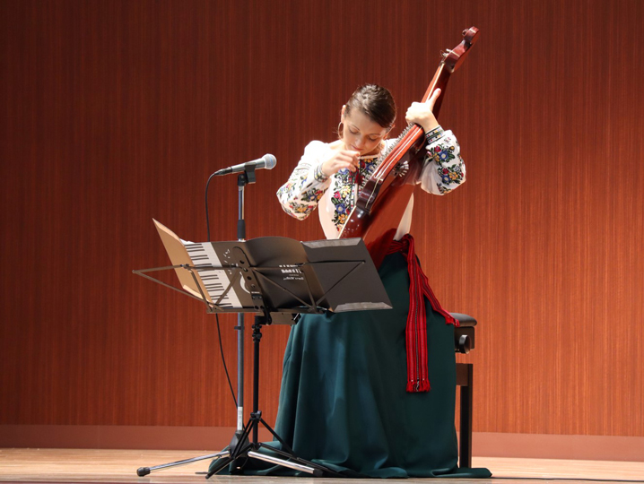 12月29日、当院の成田国際ホールで、ウクライナのバンドゥーラ奏者・カテリーナさんと、篠笛奏者・久保木智康さんによるボランティアコンサートが開催されました。