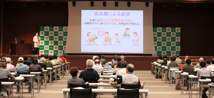 糖尿病の治療、食事、運動療法、検査、薬などについて、医師・看護師・リハビリテーション科・栄養室・検査室・薬剤部のエキスパートがわかりやすくお話しいたします。