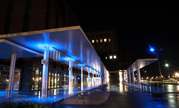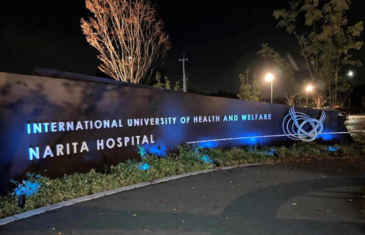 2年目を迎える当院でも、糖尿病・代謝・内分泌内科部長の竹本稔 教授のもと、今年もブルーライトアップを行っています。