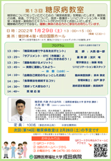 糖尿病について理解を深めていただくための「糖尿病教室」を開催いたします。