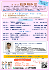 糖尿病について理解を深めていただくための「糖尿病教室」を開催いたします。