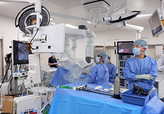 当院は腹腔鏡下肝切除においてもこれまで多くの実績を積んでまいりましたが、今回の「ロボット肝切除」第1例目の成功により、これからも大学附属病院として、地域の皆様へ先端治療をいち早くお届けできるよう一層努めてまいります。