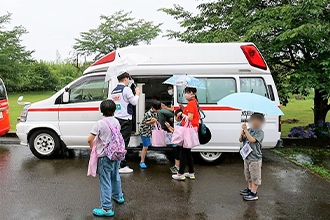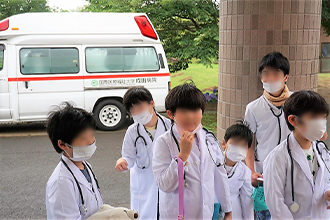 7月1日(土)、成田市の社会福祉法人 大成会が4年ぶりとなる「あじさい祭り」を開催され、「職業体験」に当院として初めて参加させていただきました。この職業体験ブースには、三里塚消防署、成田警察署、成田市内郵便局、ANA成田エアポートサービス㈱、東日本旅客鉄道㈱成田駅など、成田市内のさまざまな団体が参加されており、当院は「お医者さんとナースの制服を着てみよう」「心臓の音を聴いてみよう」「赤ちゃんを抱っこしてみよう」「救急車をまじかで見てみよう」などの体験をご提供しました。