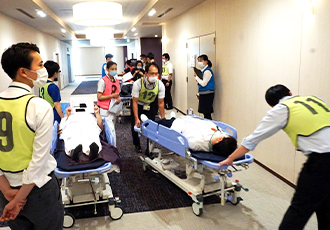 災害拠点病院である当院は10月2日、院内の国際ホールで大規模災害を想定したトリアージ訓練を行いました。トリアージとは災害発生時に多数の負傷者が発生した際、限られた医療資源でできるだけ多くの人を助けるため、重症度により負傷者の搬送や治療の優先順位をつけることです。