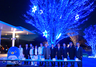 12月18日(水)には、小泉市長、関根副市長、うなりくん、市議会議員の方々などがご同席のもと点灯式を行い、約1万球のイルミネーションがスタートいたしました。
